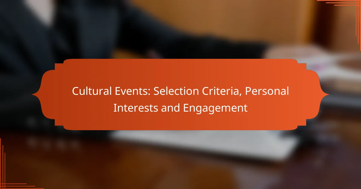 Personal interests play a crucial role in selecting cultural events, as they help ensure a more enjoyable and engaging experience. By aligning events with your passions, you can enhance your appreciation and participation in the cultural landscape.